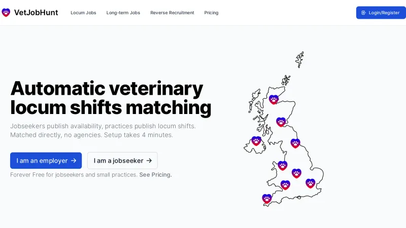 Vetjobhunt.uk Automatic veterinary locum shifts matching